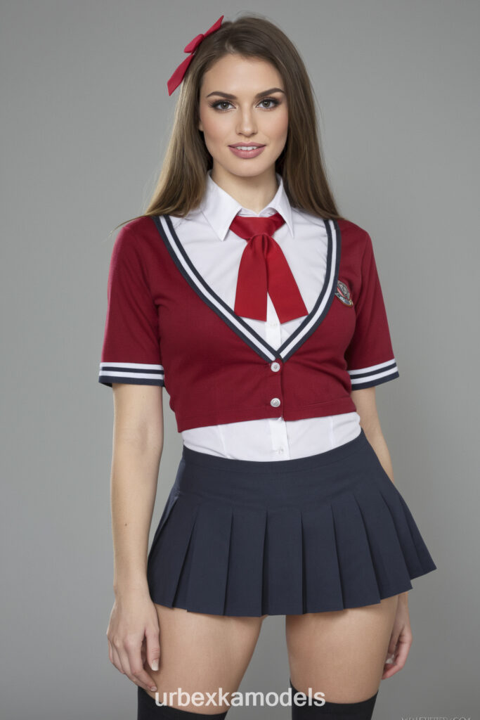 American College is a bold photo collection that celebrates the charm of the classic American schoolgirl style. Stunning models wear uniforms that blend tradition, elegance, and youthful energy. Pleated skirts, crisp shirts, and knee-high socks create the perfect preppy look.