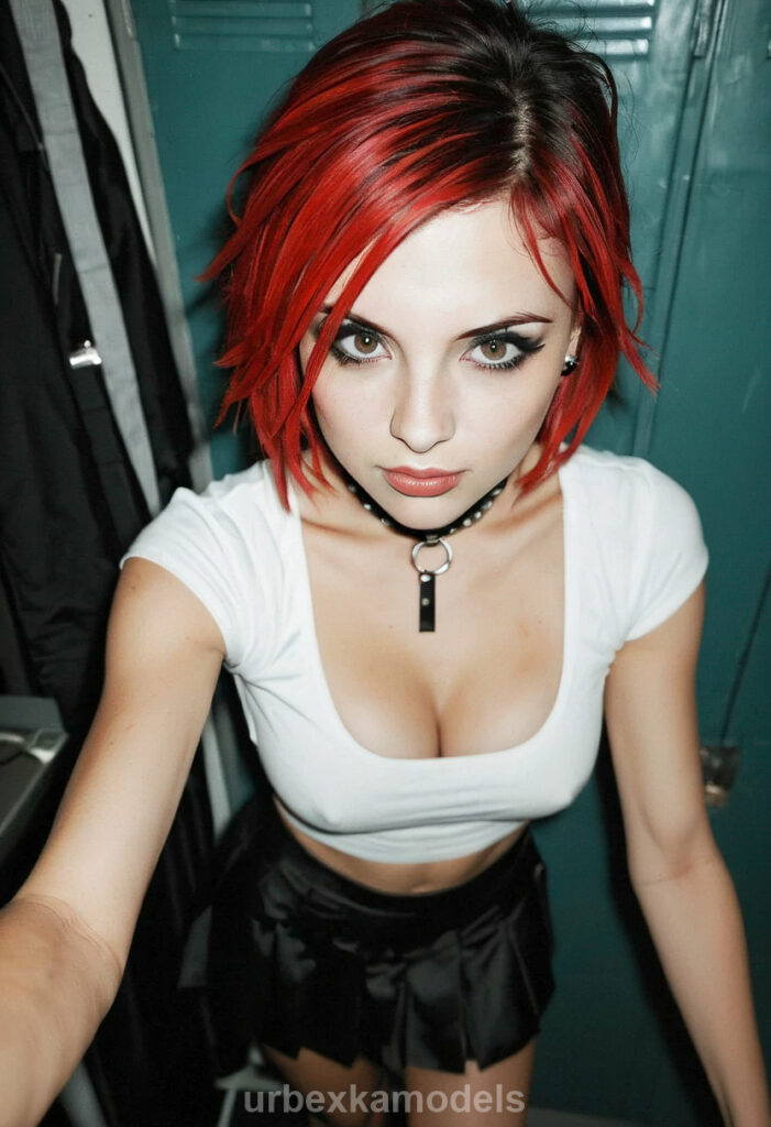 This gallery channels the spirit of punk rebellion through a bold red-haired muse captured in a vintage-inspired home setting. Warm reds, textured shadows and analog-style lighting create a raw yet stylish atmosphere infused with attitude and authenticity.